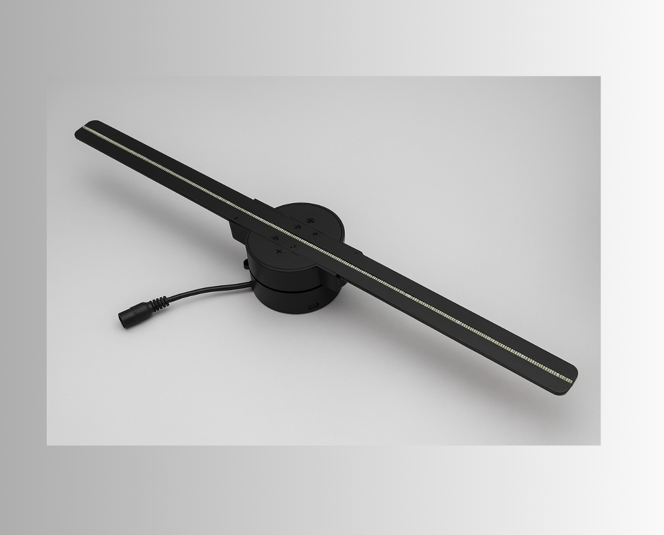 TheHoluxe™ uses high speed spinning blades with tiny LED lights. As the blades rotate, the LED flash in precisely timed sequences. Creating the illusion of smooth, floating images in mid air. Thanks to your brain blending visual frames together in a fraction of a second.